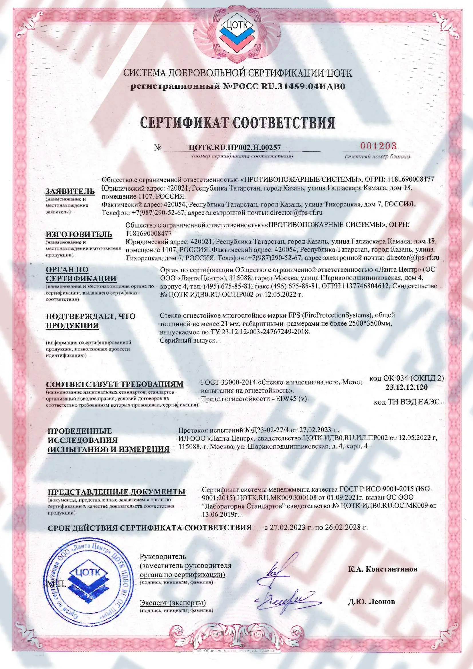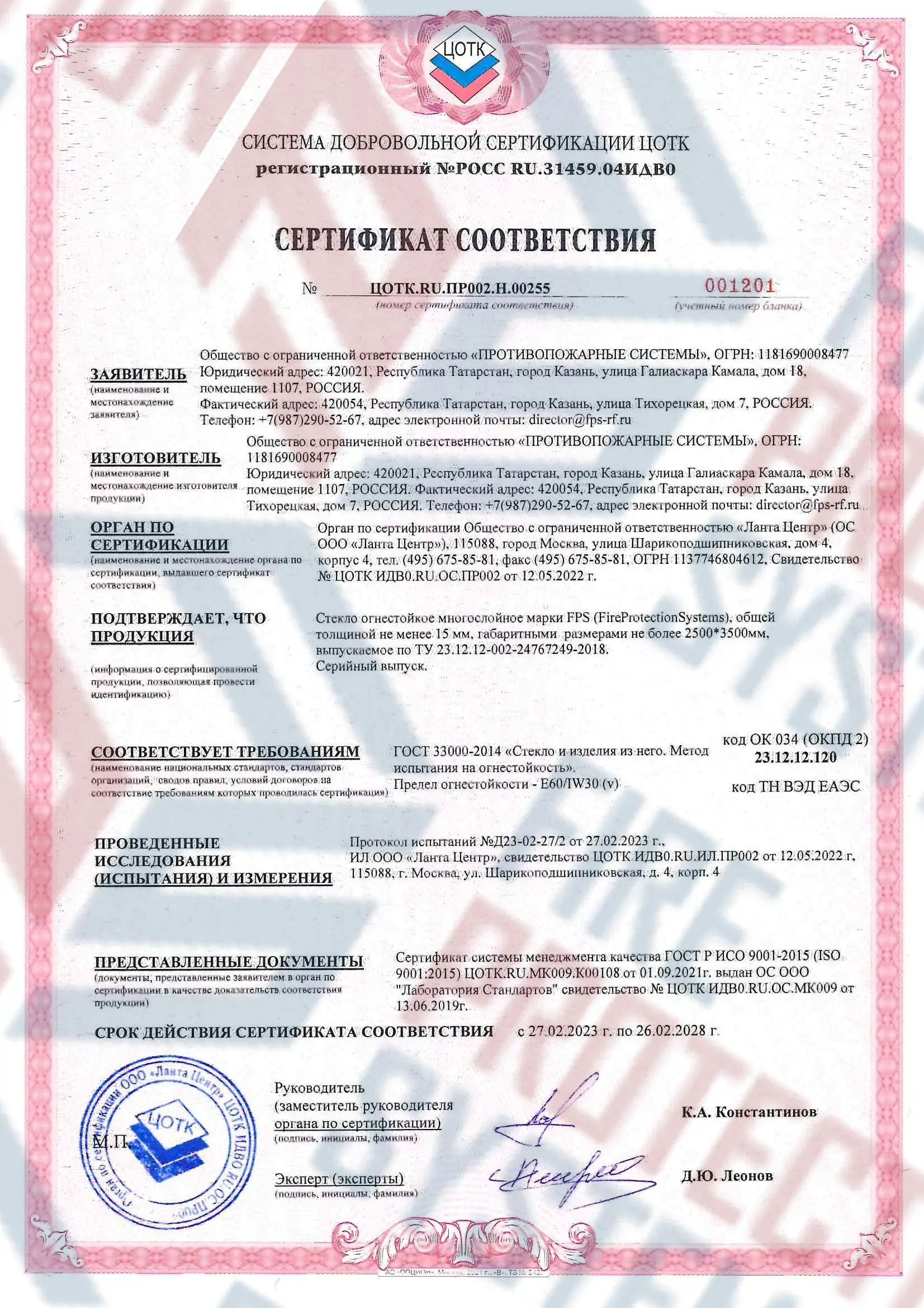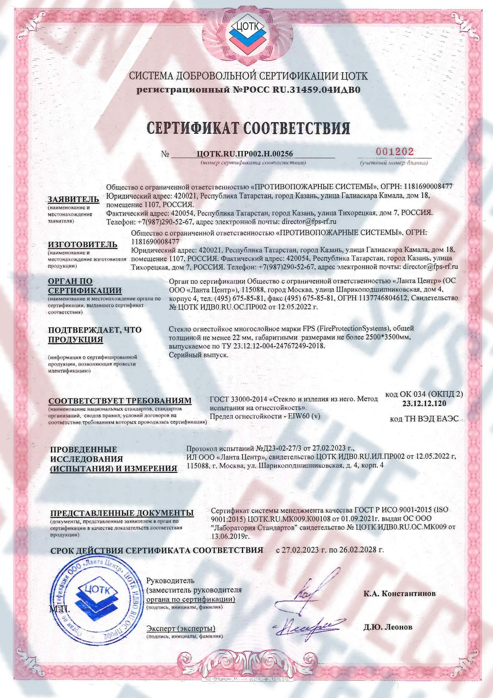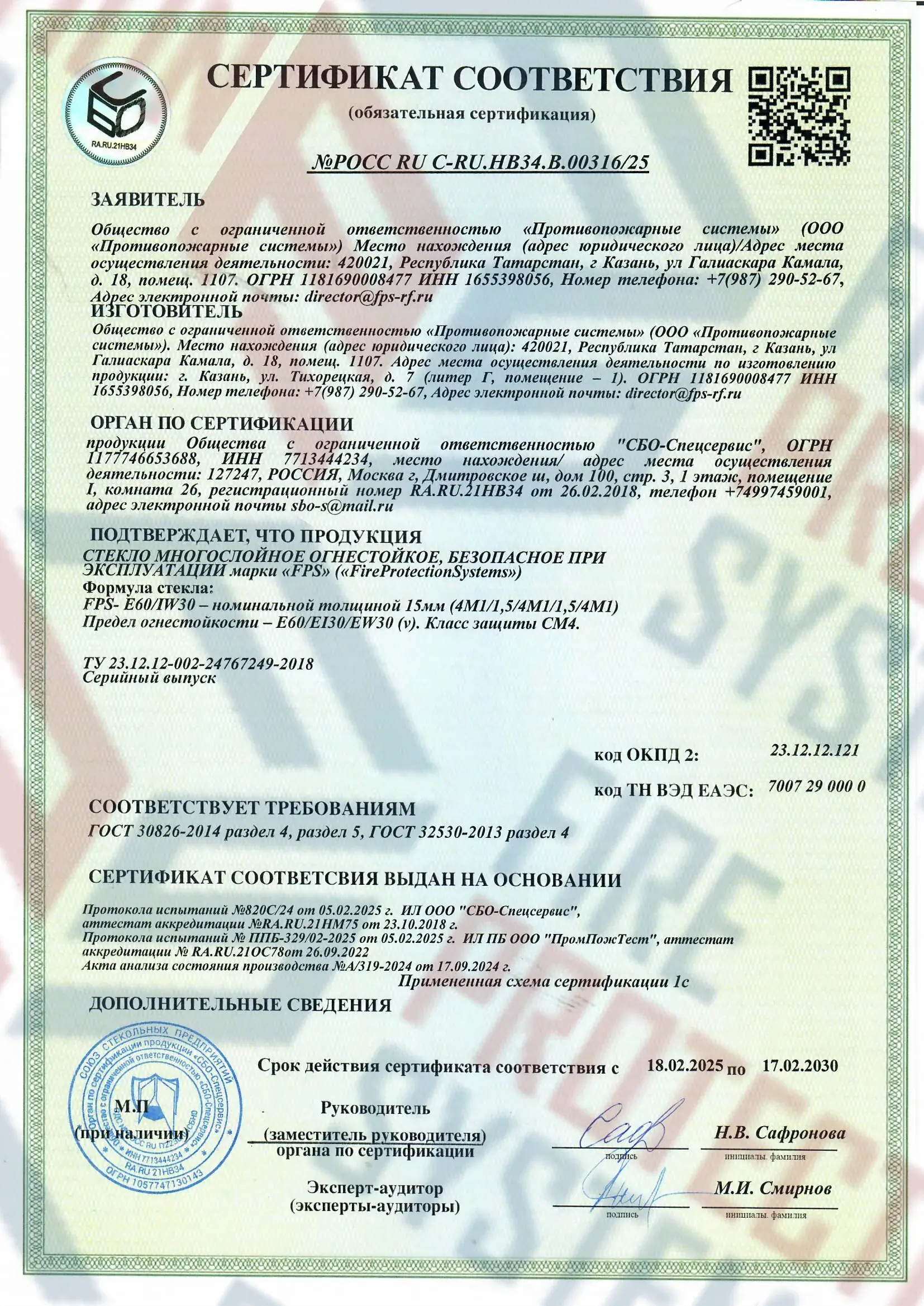 Противопожарное стекло в Владимире от производителя «Fire Protection Systems». Мы изготавливаем многослойные стеклопакеты из огнеупорного противопожарного стекла. В нашем каталоге вы найдёте противопожарные стёкла по ГОСТу EIW15-EIW60 с огнестойкостью от 15 до 60 минут. Изготовление противопожарных стёкол на заказ стандартных и нестандартных размеров. Продукция сертифицирована и доставляется по всей России. Узнайте как купить противопожарное стекло от производителя у специалиста компании «Fire Protection Systems».
