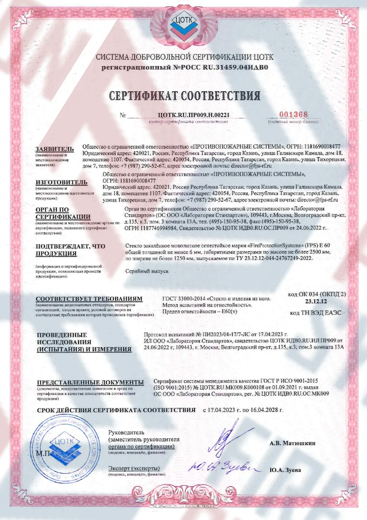 Основными преимуществами заказа огнестойкого стекла у нас являются: