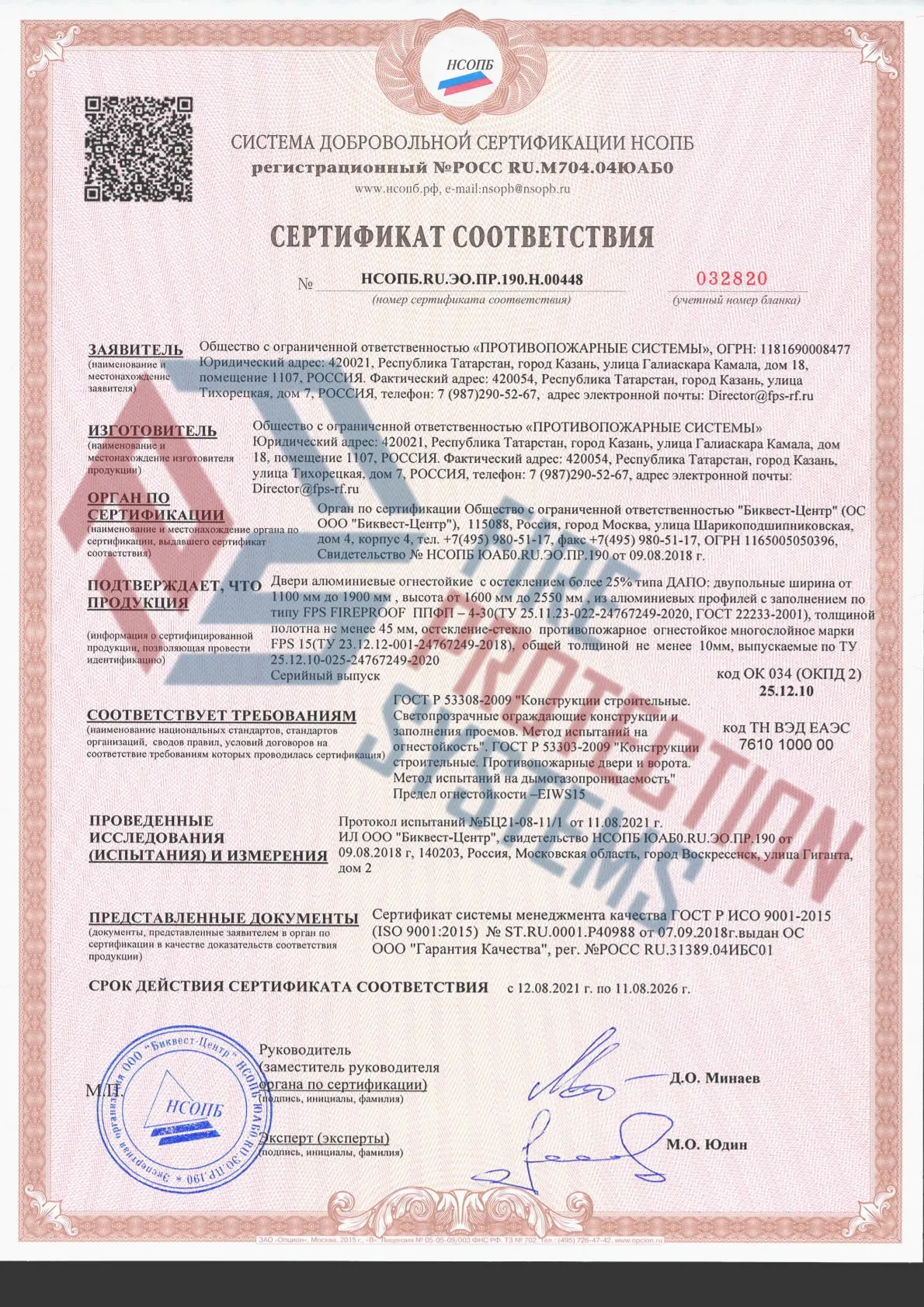 Противопожарные алюминиевые двери в Владимире от завода-производителя «Fire protection Systems». Мы предлагаем глухие алюминиевые и светопрозрачные противопожарные двери любых размеров. В нашем каталоге представлены противопожарные двери от EIW15 до EIW 60 с тёплым и холодным профилем. Наши товары сертифицированы и полностью соответствуют ГОСТ. Также мы предлагаем доставку по всей России и установку противопожарных дверей из алюминиевого профиля на объекте. Закажите консультацию специалиста «Fire protection Systems», чтобы узнать, как купить противопожарные двери остекленные алюминиевые по лучшей цене.